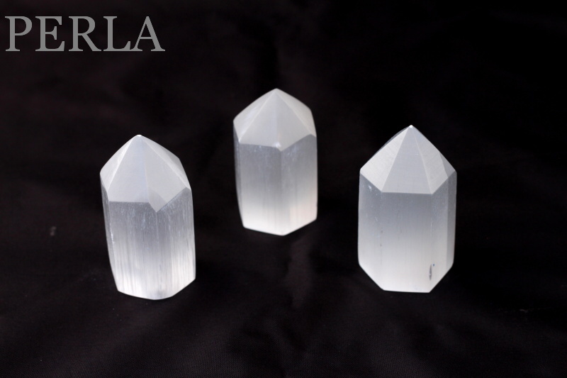 Selenit býva najčastejšie bielej farby, ale môže byť aj ružový, oranžový. Je vláknitého materiálu s jemným ryhovaním.Selenit je jedným z najsilnejších krištáľov, pomáha k vytvoreniu ochrannej mriežky. Vyrovnáva pôsobenie voľných radikálov, čistí lymfatický systém.Je to anjelský kameň, umožňuje prístup k anjelskému vedomiu. Výborne sa hodí na meditáciu a duchovnú prácu.