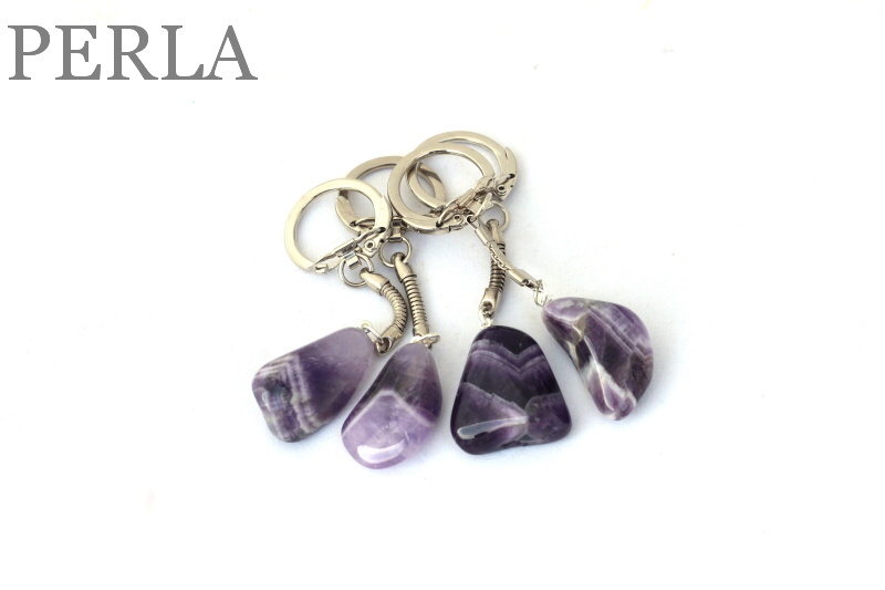 Tromlovaný a leštený kameň veľ. L = 2-3 je uchytený v kľúčenkovej mechanike dĺžky 6cm, striebrený tombak.
