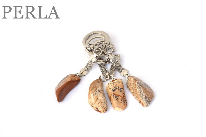 Tromlovaný a leštený kameň veľ. L = 2-3 cm je uchytený v kľúčenkovej mechanike dĺžky 6cm, striebrený tombak.