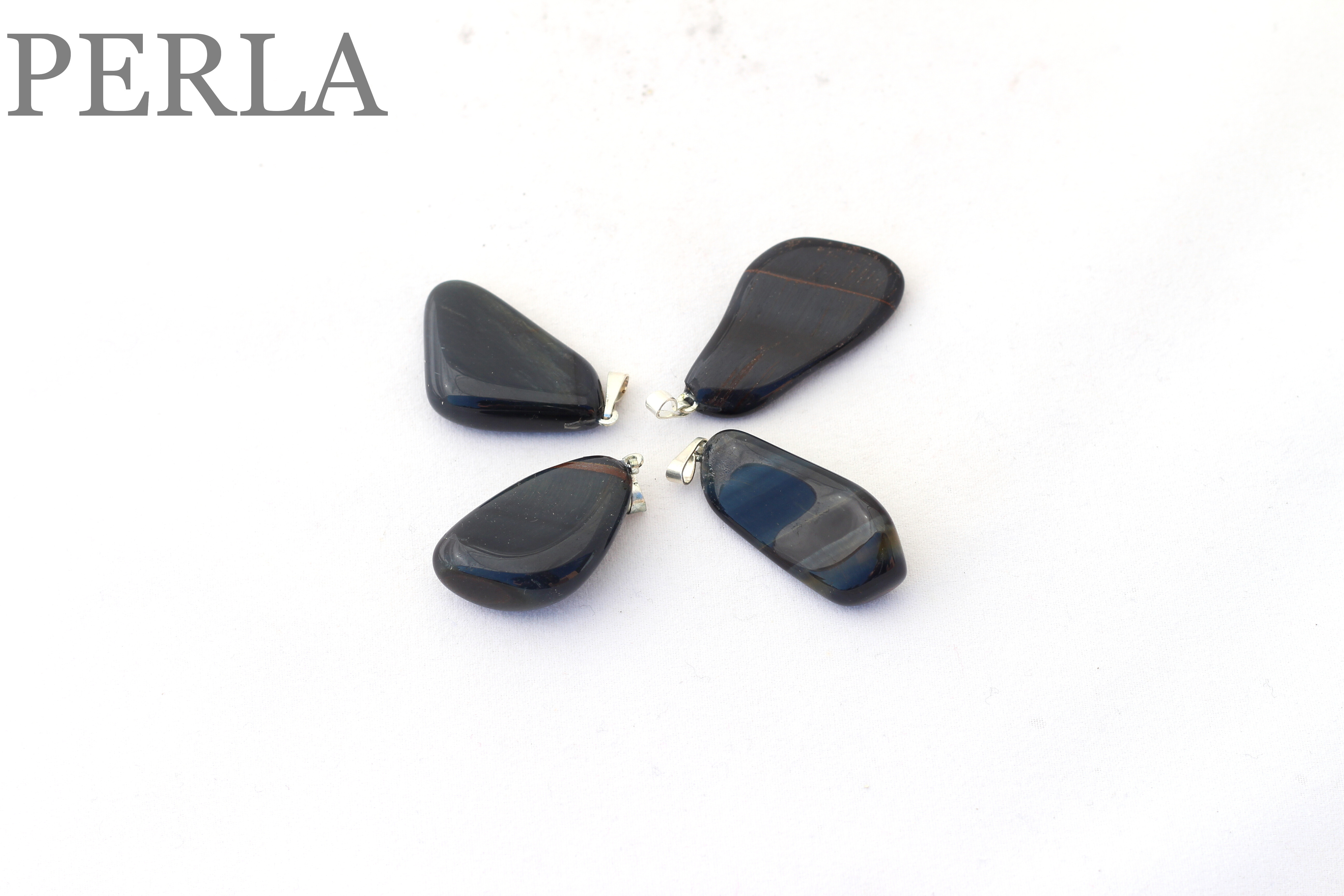 Tromlovaný leštený kameň vel. M = 1,5 - 2 cm, záves strieborný tombak.