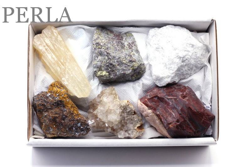 Fotografia je ilustračná, pri objednaní obdržíte box, ktorý obsahuje zhodné druhy minerálov ako na fotografii, môžu sa však tvarovo líšiť.
