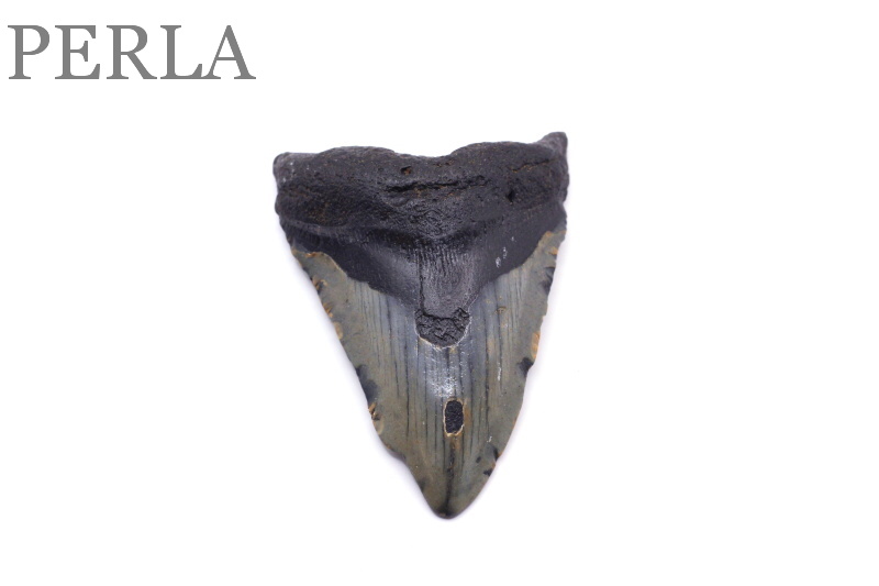 Skamenelý žraločí zub patriaci druhu CARCHAROCLES MEGALODON (to je terciérny veľký biely žralok) o veľkosti cca 7,8 x 6,2 x 1,5 cm.